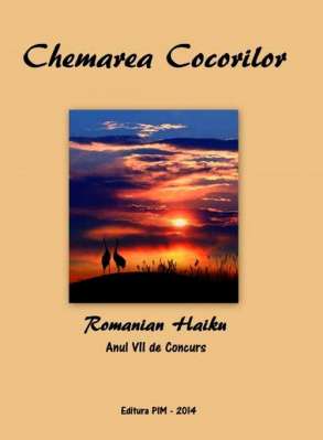 - - - - - - - - - - - - - - - - - - - - - - 2014-12-28 | [This text should be read in romana] | Grupul RO KU se poate lăuda deja cu 11 volume publicate în intervalul 2009-2014. Ultimul, Chemarea cocorilor, este cel de al șaptelea din seria cocorilor. Dacă la primul volum au participat doar 19 dintre membrii grupului, la ultimul sînt prezenți 34, un număr aproape dublu. Concepția volumului a rămas aceeași de-a lungul celor șapte ani: o primă parte cu poemele premiate de-a lungul unui an, în cele 52 de săptămîni ale concursului, și o a doua în care fiecare dintre participanți beneficiază de 4 pagini personale, unde, în afara unei scurte note biografice și a unei fotografii, poate publica și alte poeme decît cele cuprinse în partea întîi, la care, în ultimii patru ani, s-a adăugat și un comentariu al unuia din poemele autorului realizat de un membru al grupului. Volumul, tipărit la Editura PIM din Iași, are 256 de pagini format A5 și se bucură și de 6 ilustrații color ale Danielei Lăcrămioara Capotă, și ea unul dintre autorii prezenți în carte. Cei 34 de autori sînt: Gabriel Alexe, Corneliu Traian Atanasiu, Doina Bogdan Wurm, Constantin Broșu,Ioana Bud, Daniela Lăcrămioara Capotă, Grigore Chitul, Cezar-Florin Ciobîcă, Claudia-Ramona Codău, Mihaela Cojocaru, Vasile Conioși-Mesteșanu, Cornel C. Costea, Narcisa Liliana Fărcaș, Genovel-Florentin Frățilă, Petru-Ioan Gârda, Oana Felicia Gheorghe, Vasilica Grigoraș, Petruța, Marcela Ignătescu, Paul-Mircea Iordache, Ildiko Juverdeanu, Iuliana Linte, Elena Malec, Liliana Negoi, Dan Norea, Cristina Oprea, Adrian Nicolae Popescu, Virginia Popescu, Adelina-Alexandra Popovici, Julia Ralia, Valeria Tamaș, Mariana Tănase, Violeta Urdă, Ana Urma. Tehnoredactarea cărții aparține tot membrilor grupului. Cuvînt înainte M-a tentat să reiau cele spuse în introducerea la volumul anterior. O s-o repet însă la sfîrșitul volumului ca o postfață pentru că sînt acolo informații despre grupul RO KU interesante pentru cei care iau prima oară contact cu un volum de haiku. Prin grupul Romanian Haiku au trecut mulți autori de haiku din vechea generație (dinainte de internet) și și mai mulți din noua generație (cea care a aflat de haiku prin interemediul internetului și a învățat să scrie haiku cu ajutorul informației găsite prin intermediul lui). Nu toți au rămas fideli acestui grup. Cei mai mulți au fost doar meteori. Alții sînt comete, dispar și se reîntorc la mari intervale. O mică parte însă a rămas prinsă într-o activitate susținută în care participarea la un concurs săptămînal a reușit să creeze o ambianță cu efecte benefice asupra tuturor. S-a produs un fel de creștere a nivelului tuturor printr-un fel de contaminare reciprocă. Grupul a înlesnit nu doar scrierea unor poeme mai bune de către fiecare dintre participanții la concurs, dar și înțelegerea mai profundă a poemelor și rafinarea gustului în aprecierea lor. Spiritul care s-a născut aici poate fi considerat o adevărată școală. Folosesc acest cuvînt nu în înțelesul de instituție și nici în acela de a face școală pe lîngă un maestru, ci într-unul care mi se pare mult mai modest deși de departe mai eficace, acela de a face parte dintr-o comunitate care te poate forma într-un mod informal. Prin simplul fapt că trăiești în ea, că participi la ceea ce se întîmplă acolo și o faci cu bucurie și însuflețire. Nu vreau să bagatelizez ceea ce se face conștient și voluntar de către cei care organizează activitatea acestui grup (cu atît mai mult cu cît fac și eu parte dintre ei). Cred însă că grupul a generat deja o atmosferă, un climat benefic și fericit și pentru cei care fac parte de multă vreme din el, și pentru cei care de vreo doi ani încoace au intrat în el ca începători. Am avut o perioadă mai bună cînd se făceau prin rotație comentarii la cele mai bune poeme ale săptămînii. Poate acea vreme a avut o influență decisivă asupra creșterii pe care am remarcat-o. Și nu cred că ar fi imposibil să apară în viitor o persoană care să-și sacrifice din timpul său pentru a face acest lucru în mod constant. Chiar și faptul că sîntem acum la cel de al șaptelea volum anual pe care-l publică grupul RH este o dovadă a unei actitități prodigioase. Cuvîntul nu este fără acoperire pentru că e vorba nu doar de o bogăție cantitativă ci și de calitatea și varietatea poemelor cuprinse în ultimele volume. Și, de asemenea, de faptul că efortul de finanțare, redactare, ilustrare, urmărire a tipăririi și expediere a volumelor către participanți este susținut în totalitate de membrii grupului. Mulțumesc celor care mi-au înlesnit redactarea respectînd în anunțarea rezultatelor un șablon pe care l-am dat anul trecut: Cristina Oprea, Cezar-Florin Ciobîcă, Petru-Ioan Gârda și Dan Norea, Danielei Lăcrămioara Capotă pentru ilustrații, Cristinei Oprea încă o dată pentru copertă și pentru ce urmează să facă la tipărire și expediere și, ultima dar nu cea din urmă, Valeria Tamaș, mama concursului. ![]()