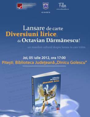 Joi 5 iulie [2012], în Sala de conferințe a Bibliotecii Județene „Dinicu Golescu” Argeș, Editura „Filos” a ieșit la rampă cu primul său volum, lucrarea de pamflete a filologului Octavian Dărmănescu. Am avut parte de o lansare discretă, cu un prezidiu pe măsură: Iulia Ciucă, din partea Bibliotecii; poeta Magda Grigore; Ionuț Trandafirescu, editorul și, evident, autorul. Octavian Dărmănescu (cu „meseria” de muzeograf la Biserica Domnească din Pitești) este absolvent al Facultății de Litere și a debutat cu volumul de cronici literare Convertirea prin literatură (2007). Iar în 2008 și-a finalizat masterul în literatură cu lucrarea Damian Stănoiu – dicționar de personaje. Volumul este precedat de un manifest „indie” și are o postfață, semnată de piteșteanul de origine Siviu Man. Colaboratul acestui eveniment a fost Centrul Județean pentru Conservarea și Promovarea Culturii Tradiționale Argeș. Magda Grigore a prezentat pe larg volumul colegului său piteștean de „litere”, colecția de pamflete fiind dedicată memoriei dramaturgului Theodor Mazilu. Într-un timp extrem de scurt, după propria mărturisire, a citit atentă aceste Diversiuni... cu „nume de oximoron” și a umplut câteva pagini de notițe, cu o conștiinciozitate care m-a dezarmat. Apoi l-a comparat cu scriitorul Haruki Murakami (Autoportretul scriitorului ca alergător de cursă lungă), precizând că o astfel de scriiere este amprenta unei „tinereți care lasă urme”. Autorul s-a „apărat” cu două texte din volum, citind despre artistul (de rang 2) și despre scriitorul cu cei 3 „n” (nehotărât, neinspirat și neinsprăvit). Alexandru Mărchidan a intervenit din public, comparându-l cu scriitorul Octavian Paler. Octavian Dărmănescu nu construiește imagini iluzorii; ele au o finalitate, un rost, adeseori neașteptat pentru cititor. Să revenim la Diversiuni... Autorul dovedește o prospețime vădit umoristică („sexul merge dincolo de cimitir”, „lui vodă i s-a fumat loboda în care se plimba”, „puștoaicele sunt sănătoase, nu mai prezintă nicio pată de cultură” ș.a.). Pamfletele sunt formulate pe 6 capitole „englezești” (intitulate de la one la six), urmărite de fatidicul 13 (la număr) de teme, exceptând cap. 5 (five) cu doar 7. Per ansamblu, 71, toate finalizate cu o scurtă maximă, traduse în limba greacă; majoritatea inspirate din inspida realitate. Aflăm de exemplu că sintagma „Moartea miroase a garoafe” este „Ο ΘΆΝΑΤΟΣ ΜΨΡΙΖΕΙ ΣΑΝ ΓΑΡΙΦΑΛΑ”. Sper că am grafiat corect. Nici autorul, nici traducătorul (Ionuț Trandafirescu) nu ne avertizează dacă este vorba de greaca veche (elina) sau de una mai recentă. Octavian D. „taie” fin ca dr. House, le știe pe toate precum Mafalda (de la „manele pe patru voci” la nemurire) și, totuși, nu apare salvator ca ciobanul de la Maglavit, trezit dintr-un vis fumat cu „iarbă”... Și, pe deasupra, nu este un moralist cu „cerul înstelat deasupra”, este asemenea unui copil care vrea să repare jucaria numită lume, cu două mâini... stângi – nu ne referim în niciun caz la scriitură, care merită toată aprecierea! Autorul expune și se expune ca putătorul de personna din Antichitate și nu dorește (și nu primește) laurii rezervați celor cu „gura mare” (pardon, cu elocință) gata să impresioneze generația MTV. Pamfletarul Octavian iubește dihotomiile, gen una caldă, una rece („nu vrem goluri, vrem fasole!”, „ea e multă, tu ești scund”, „predispus să trăiască pe picior mare, omul are ciorapii prea scurți”, „timpul trece, secretarele rămân”, „televiziunea e un malaxor mecanizat, surd, care ridică curve și coboară sfinți”), gen câmpu-i alb, oile-s negre („vremuri de dulce, dulciuri de post”, „vremuri apuse, cu alți copaci”, „timpul este invizibil, pe el nu îl latră niciun câine”, „cola și mentol”, „moartea e inventivă, mereu nouă și cochetă”, „nu te îmbrăca de la sehaș, că visezi nemțește” etc.). Asemenea unui Caragiale, „scrofulos la meserie”, privind ca un „ninja” neaoș, gata să-i execute pe amicii de la birtul comunal, oferă (și) un manifest indie, amintind de stilul de muzică cu același nume, la modă în anii ’80. Acest manifest este strecurat și în text, ca mina antipersonal, ce așteaptă să fie atinsă, ca să declare război („miliardele de iubiri interzise lucrează indi-rect și topesc ghețarii”). Poetul Octavian oferă toată muzicalitatea alfabetului (de la ADN la CNP) limitat al generației june, greu de respirat. Cultural vorbind, tinerii cunosc de la Greuceanu la... Guță, trecând prin Gerovital; „la puștiul recent terminarea propoziției este un mister, începerea ei o interjecție”. Cinicul Octavian știe că totul este relativ („nici măcar kilul nu mai e kil, ci opt sute de grame”, „pământul e pe terminate, ca timpul”, „sufletul nu are chiar acele 21 de grame”), chiar și morala, prințipurile (bărbatul „care întreabă obraznic la carmangerie «cât aveți pieptul, doamnă?», românache „nu mai pupă țara, nici partidul, ci se pupă singur și face avere”...). Umoristul Octavian tratează teme mari, savante pe alocuri (spațiul, timpul, destinul, entropia!) cu o notă ironică („elev tocilar călare pe Gazeta Matematică”, „timpul și spațiul, amorezați ca în filmele indiene”). De remarcat definițiile voit incorecte (politically incorect, cum sună la modă): „neurochirurgii ne explică așezat că nu avem suflet”, „sufletul, acel fâs prețios pe care nimeni nu l-a văzut”, „doar o viață ai de murit”, „microbistul este un monument al informației”, „numai somnul este sincer”, „destinul e imprevizil ca pantera roz”, „găinile noastre se ouă de două ori pe zi”, „copii înțărcați cu Cola”, „vrăjitoarea Portocala v