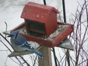 Le geai bleu arrive aux mangeoires