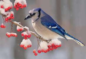 - - - - - - - - - - - - - - - - - - - - - - 2018-02-05 | [This text should be read in francais] | Il neige ce matin... Tout est si blanc et si pur ! Paysage féerique... Mon regard se tourne vers mon sorbier enneigé près de la fenêtre Rouge et blanc là les fruits de mon sorbier frissonnent sous le gel Blanc rouge indigo le geai bleu bec affamé bouffe les baies