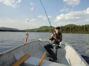 Je sais, vous n'allez pas me croire mais ce matin, j'ai pris ma première truite. Oh je n'ai eu guère de mérites. Mon frère Michel m'a raconté tant d'histoires de pêche avec ses trucs et ses secrets, moi, néophyte, je gardais silence et puis discret, je gobai tout, absolument tout de ses techniques pour mieux faire face à la musique ! En moins de deux, j'ai appris l'art de lancer la ligne de près ou de loin et même le plus difficile : celui d'éviter d'accrocher l'hameçon aux branches de pins et de sapins. Puis, hop ! une truite mordit le ver et d'un petit coup sec, le poisson vola dans les airs hors de l’eau frétillant et se tortillant comme une vicieuse la gueule en sang et toute visqueuse. -Ça y est Guy, tu viens de prendre ta première truite, hurle mon frérot d'un ton excité ! -Crois-moi, mon Michel, et sois assuré que ce ne sera sûrement pas la dernière ! (Poème inspiré le mois dernier où avec mes sept frères j'ai passé quelques jours au chalet de mon frère Élie dans une Zec de la Côte-Nord au Lac Gorgotton pour une excursion de pêche)