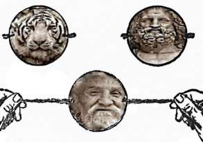 Comment fabriquer son thaumatrope Comment fabriquer à moindres frais un « thaumatrope », ce petit divertissement métaphysique qui est à l’origine des ancêtres du cinéma ? C’est un simple passe-temps qui permet de saisir, par la ficelle des choses, en quoi l’immanence et la transcendance elle-même, savent se faire cinématographiques (du grec kinêmatos : mouvement), c’est-à-dire, capable de produire ou de reproduire le mouvement par une suite de photographies successives. Sur ce principe, le thaumatrope, se présente à nous comme une « roue à miracle », ou autrement dit, un « moulinet à mirage », un jeu visuel qui nous donne l’impression de voir une réalité indivisible, une « image unique » là où il y a, dans la vérité d'un recto verso, plusieurs « images distinctes ». Il s'agit le plus souvent d'un disque de bois ou de carton, sur lequel ont été réalisé par dessin, peinture ou collage, sur chaque face opposée, des représentations différentes : ici, en l’occurrence, sur une face vous pouvez observer comme au zoo un fier animal, le lion,et sur la sainte face opposée, vous pouvez contempler quelques images de dieux grecs ou romains, en ces célestes lieux où du Chaos jusqu’Aphrodite, des générations de dieux se sont mélangées par nature à l’animalité, pour mieux procréer des mortels à leur propre image et ressemblance. Dans cette théophanie d’un genre particulier, c’est pratiquement comme dans un jeu de marelle, d’un côté vous avez quelque symbole du Ciel, et de l’autre côté, quelque allégorie de la Terre. Tout se passe entre les deux ! Comme le "je" et le " tu" , le « jeu » et « l’enjeu », le « ludique » et « l’illusoire » ont une face commune, un plus petit commun dénominateur qui est l’image, tout, en ce bon lieu du milieu se joue entre les images des deux surfaces. En faisant tourner rapidement le disque, à l’aide des ficelles ou des élastiques tortillés aux deux extrémités, vous voyez de vos propres vœux ce que vous avez envie de voir ! Les deux dessins se confondent en se superposant, créant ainsi un "champ d’illusion", une suggestion de vie. L'Illusion d’un mouvement ou d’une nouvelle réalité, c’est tout à fait comme ça, que s’opère par l’opération de l’esprit toute naissance, et en particulier la genèse de l’homme. À l’aide de ce jeu, que nous comprenons être l’ancêtre des dessins animés, nous saisissons comment s’articulent la vie, le mouvement et l’être ; comment le dessin de l’image, et les desseins de l’observateur, se confondent parfaitement, combien les idées sont mouvantes plus que vivantes, bien que chaque image jouisse de l’inconfusibilité en restant toujours la même, avant comme après le jeu. Tout reste une question d’avatars des images ou des pensées ! Ce jeu permet de mieux comprendre comment fonctionnent nos sens hallucinés et tout particulièrement la vue. Ce jeu de thaumatropisme, permet de mieux comprendre comment la vie est mouvement, comment l’illusion du temps donne vie aux images, aux mots et mêmes aux maux ; et quel est le principe même du film de nos pensées et de nos vies, quand les images s’accumulent dans nos têtes folles pour nous faire prendre pour des lanternes magiques, ce qui n’est que vessies pleines d’images et de soucis. Alors, à vos fournitures ! Il vous faut de la peinture ou des crayons de couleur, des feuilles de papier, un carrés de carton, un compas, de la colle, de la ficelle ou des élastiques. pour réaliser votre thaumatrope, c'est-à-dire pour faire du REAL, en tout premier, dessiner à l'aide du compas 2 cercles de 4 ou 5 cm de rayon sur la feuille de papier, et 1 cercle de 4 ou 5 cm de rayon sur le carton. Puis, réaliser (c’est-à-dire « rendre réel ») les deux dessins complémentaires sur chaque cercle de papier : un animal sur une face et un dieu sur l'autre. Découpez ces cercles dessinés et coloriés, puis collez-les de chaque côté du disque en carton. Percer deux trous de chaque côté du disque, afin d’y passer la ficelle, ou d’y glisser l’élastique. Enfin, l’œuvre réalisée de vos propres mains de bête et de dieu, retenir le thaumatrope uniquement par les ficelles opposées ; puis, avec attention, faites tourner le disque sur lui-même pour « percer le voir » et entrevoir ainsi dans ce jeu de candide, l’homo erectus que se dresse contre les éléments, et l’homme en marche qui déjà se dirige vers lui-même au-delà de toutes les images. TRAVAUX THEORIQUES Avant-propos Comme le cinémascope est lui-même, un procédé anamorphique qui permet de projeter sur écran large (par déformation de l'image) un film, tous nos films internes et nos déformations, par projection ou transfert, psychologiques, relèvent de la même dynamique et de la même kinésie. Alors, comment passer de la pratique à la théorie ? Du jeu de thaumatrope à l’enjeu du thaumatropisme ? Par routine, « nous routinons » la réalité, c’est-à-dire que par habitude nous la boudinons ! En dehors des laboratoires d’alchimie et des oratoires cabalistiques, il semblerait que l’usage des mots et des images ne soit plus véritablement soumis au véritable discernement et à la dissection. Et si, en poète et spécialiste des assuétudes, je vous parlais un peu de cette véritable compulsion que nous avons pour les mots et les images, je ferais, me semble-t-il, quelque peu œuvre d’analyste. Mais comme on ne peut, ni ne doit, discerner pour les autres, bien qu’une simple pensée soit déjà une fameuse somme d’images ou de représentations jetées à la figure de chacun, je me permets quand même, si vous me le permettez, de vous soumettre ce simple partage d’idées. Entre la source et les nuages, le mouvement Entre les animaux et les dieux, l'homme Entre les images et les représentations, le monde des idées... Le ludisme est une capacité de l’animal à part e