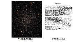 - - - - - - - - - - - - - - - - - - - - - - 2012-11-11 | [Acest text ar trebui citit în francais] | Tout comme le lait des voies lactées et la voix des encres noires se mélangent l’une à l’autre, s’harmonisent, coulent pareillement d’une même source jaillissante, entre les Galaxies et les pages manuscrites, l’écriture se fait lien, elle se tire, car dans l’Univers, dans les cieux et sur Terre tout est lié à jamais ! Du format A4 à celui de l’infini, en ces lieux, celui qui se joue de l’espace se joue du temps, et ceux qui se jouent des espaces, peuvent jouir de mille perspectives comme de l’éternité. Dans la Constellation du Verseau, les poètes écrivent avec l'eau bleue des lagons zodiacaux ; au risque de la durée, ils s’amusent du temps qui passe et de l’instant présent se divertissent – ils contemplent amoureusement les mots comme des cieux constellés ou chaque ciel recto verso est comme une belle page déployée. Pour eux, l'Univers est un grand livre ouvert, aux mille méandres des lignes et des axes célestes; en ces haut lieux, les poètes tout comme des astrophysiciens s'y distraient des vides et des pleins de la matière, de l'intérieur et de l'extérieur des choses, comme des vides et des trop-pleins de sens... La plume est une petite machine à remonter le temps ! Dans ces Univers parallèles, ceux qui écrivent entre les lignes et dans l’écart entre le passé et le futur, sont les maîtres du Verbe. Et ici même, les naines blanches et les fautes d’orthographe faillent pas amour des mots (…) Pour se mirer dans la nuit et causer comme Brel d’impossibles étoiles, l’écriture s’écrit, elle s'étire noire sur blanc, le ciel s’y déploie en métaphores scintillantes ; c’est tout l’art de conjuguer les mots et l’existence avec douze mille verbes, face à douze mille soleils. Quand, en miroir, la voie lactée se voit en toute majesté dans la page manuscrite, les poètes ont des trous noirs et les cieux de lumineuses ponctuations ... Car la grammaire céleste atteste d’une orthographe qui serait celle du Cosmos ; présent, passé, imparfait, plus que parfait ou futur…, comme l’attraction céleste et celle des corps, tous participent du Logos. L’accord des verbes et des planètes, les participes passés et les constellations présentes et à venir, tout participe et se joue de l’être et du devenir. Dans le continuum espace-temps, les mots sont en réalité des éclats de sens qui cherchent à signifier ! Qui contrôle la ligne et l’interligne avec virtuosité compose une musique intemporelle ; qui maîtrise les limites entre l’intériorité et l’expression, se voue avec passion aux textes dans l’écartèlement des marges. Les êtres et les lettres se disposent pour l’expansion ! Comme passe l'avion, tirant son filet de lait blanc, qui maîtrise avec brio les mots, qui fait de l’écriture sa propre respiration, se fait lui-même « calligraphie » dans un beau ciel bleu sans trop de nuages. Comme les passages scintillants des météores se produisent en mille étoiles filantes, l’empreinte moite des paragraphes, paraphe avec amour ces jets d’écriture qui se donne à lire et à rêver; c'est un pax simile, une grande trace de paix qui traverse l'Univers. (...)