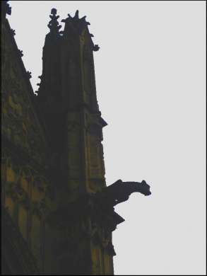 - - - - - - - - - - - - - - - - - - - - - - 2013-09-02 | [This text should be read in francais] | Le psychopathe comme le Saint qui ne parviennent pas à gérer leurs pulsions animales, peuvent saisir cette contraction aiguë des nerfs et tout ce jeu de rouages, de pressions minérales et de dépression des chairs, en cette tension permanente qui les écartèle sans cesse entre le Ciel et la Terre, l’Intériorité et les apparences. De même, le Voyant né lucide comme tous les voyeurs invétérés, qui n’arrivent pas à contrôler leurs visions, peuvent comprendre ce désarroi des gargouilles qui crachent le sang des peuples martyrisés. Entre les idées fixes et les étoiles filantes, La bête et la Belle, L’abîme et le Bon Lieu… L’espace et le temps se déchirent Dans une avalanche d’images Et de craquement minéral. (...) Tendues entre l’intériorité et l’extérieur, les Basiliques ne sont-elles pas comme des lieux de passage, des chemins vers quelque ciel perdu comme à court d’horizon ? Les grandes Cathédrales et Basiliques pétrifiées ne sont-elles pas comme d’anciennes victimes de Méduse ou de Sapiens médusés, et les gargouilles les images mêmes des Gorgones figées par l’attente, dans l’attente ? C’est normal et c’est même naturel, tout corps crispé n’est-il pas lui-même le lieu privilégié de tous ces grands tiraillements, de toutes ces contractions en leurs multiples contradictions ? Oui, C’est là même l’enfer des enfermements, La gaine, Le corset, La prison des âmes, Le lieu même des compensations Et celui des grandes décompensations, Entre de fragiles consolations De grandes désolations Cousues d’adversité. Entre les mors de la vie et l’appel des Ailleurs, C’est là même le beffroi des effrois, Le haut de coeur, Le lieu des oubliettes sordides, Des récits et des contes sanguinolents Avec leurs ogres redoutables Et leurs cruelles Gorgones C’est bien là, Le royaume du milieu, Le lieu médian de tous les cris du dehors Et celui de tous les grincements du dedans ; Oui, c’est bien là le lieu redouté et redoutable Des pas et passages, Des labyrinthes... Et de tous ces supplices inventés par le Sapiens, ceux des récits mythologiques et des histoires de grandes terreurs. (...) En La fête de la Faim. « Si j'ai du goût, ce n'est guères que pour la terre et les pierres » Ainsi s’exprimait Rimbaud, le Voyant de Charleville « Mangez les cailloux qu'un pauvre brise, Les vieilles pierres d'églises, Les galets, fils des déluges, Pains couchés aux vallées grises! » Car en Notre Dame d’Espérance, l’espoir lui-même jaillit de toutes ces gargouilles taillées de hautes brises et de froides giboulées. (...) L’autel n’a plus de vin ni même de pain, les bénitiers n’étanchent plus nos soifs, ils s’assèchent comme un désert ou une vieille peau. En cette fête de la faim, sans fin les pierres soupirent et les âmes aspirent après cet Homme qui lentement mais surement, vient à nous comme viennent les belles pensées. La Basilique s’étire sur la pointe de ses flèches, elle se dresse pour mieux percevoir l’arrivée de l’élu, comme ma sœur Âme au sommet de sa tour, elle semble surplomber la ville, humblement, et trôner sans gloriole sur d’anciennes murailles. Elle semble, car tout est apparence, illusion… Car elle tremble surtout en ses niches trop vides. Elle vibre de tout son être tendue à perdre la raison, assidue à l’appel des cloches et au souffle des vents. En ses cavités trop vides, seuls quelques pigeons s’éprennent de sa candeur de pierre, y trouvant un abri bien sec pour les jours de grandes bourrasques. Dans le nuit, toutes les gargouilles sont grises et toutes les vierges noires ! (...) Comme la Bastille de Rimbaud, « Cette bête », qui selon le poète « Suait du sang à chaque pierre », Notre-Dame de l’Espérance transpire à plein moellon la moelle de nos espérances Comme dans un lit rêvé pour quelque hiver, tel « Un nid de baisers fous » reposant « Dans chaque coin moelleux. » (...) En la Basilique Notre Dame d’Espérance, tout patiente, tout est là, lactance d’un ciel aux arrêts, latent, latence, comme à l’état de pause, une trêve, un arrêt sur image, avant les grandes retombées. Tout est déjà dit, gravé dans la pierre, tout est déjà là en survie, comme en sursis, en suspens dans l’espérance moite des cœurs aimants, dans l’attente fébrile de jours meilleurs, dans l’expectative d’un bonheur qui ne saurait tarder, tellement palpitent les cœurs dans les poitrines sèches. Tout semble dans l’attente, comme en suspens ; tout travaille au cœur de la pierre comme au cœur du monde. « Homme de constitution ordinaire, la chair n'était-elle pas un fruit pendu dans le verger, ô journées enfantes ! » (Sonnet – Rimbaud) Tout espère ardemment, tout patiente vivement, tout y prévoie une majestueuse survenue aux grandes avenues de nos profonds souhaits ; tout tend vers cet Homme différent de nous Sapiens ; tout souhaite le changement, tout endure l’épreuve et la souffrance pour un mieux à venir, tout bande ses arcs et déploie ses diversités. Entre la pesanteur des causes et l’apesanteur des grâces, tout est grave et gravité ; comme tout palpite, tout tremble, tout semble en pleine gravidité, depuis la matière première à l’origine du souffle, à travers l’œuvre en devenir et la nuit des cavernes labyrinthiques. (...) C’est une éternelle et gravidique création, une lente et longue gestation de l’Humain, Notre Dame d’Espérance est la Porte du Ciel et de la Terre, la Très Sainte Montagne et l’Etoile de la Mer ; elle reste Notre-Dame de la Délivrance, Vierge Ardente et Table des Béatitudes ; Reine des nuées, Arche d’Alliance et Fontaine scellée pour les ères des ères ; elle est encore et pour toujours l’Arbre de la vie, la Rose mystérieuse, la Valée humide et la Vasque des bienfaits,